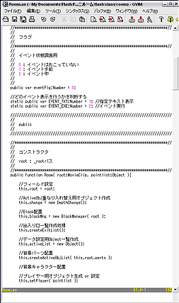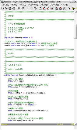 と書きました。しかしFlashのasファイルはまだメジャーではないためか asファイルをVimで開いても専用の色づけは行ってくれず、ほとんど真っ黒な状態で表示されておりました。