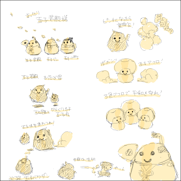最後、中途のラフ画でかわいいキャラクターがいたので新規で描きました。